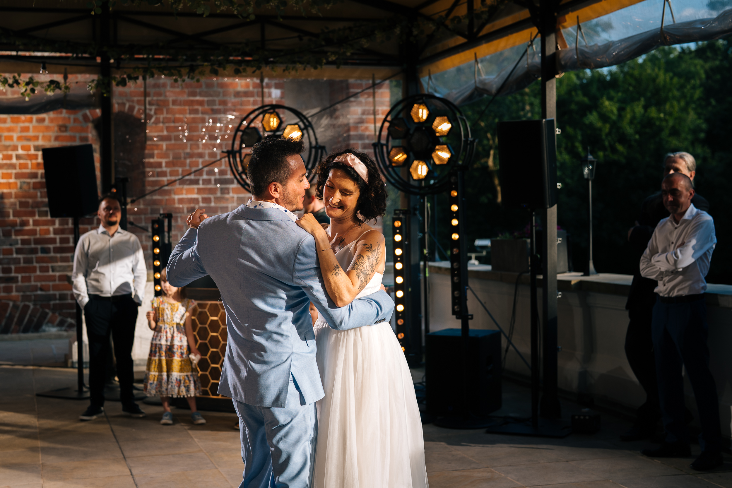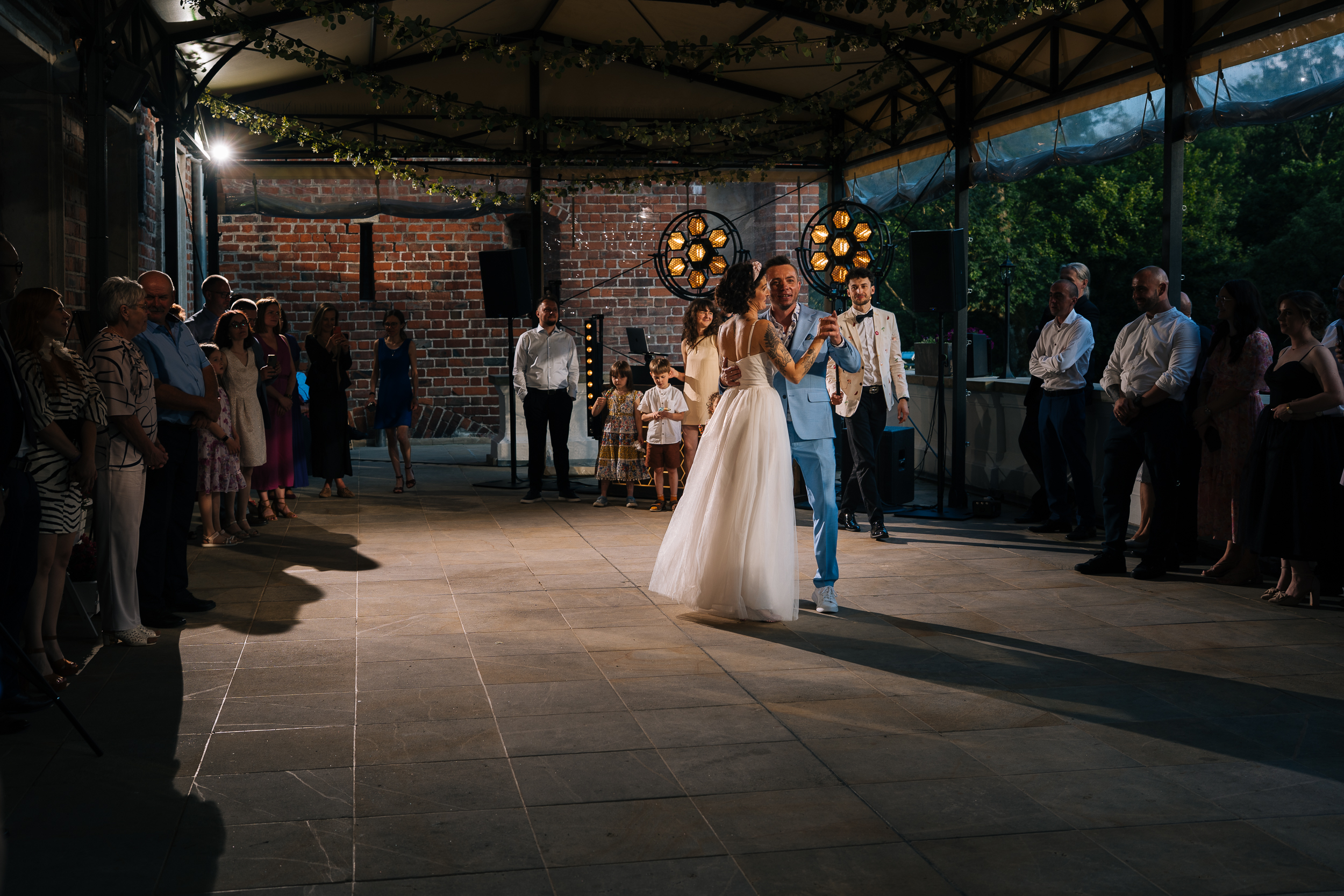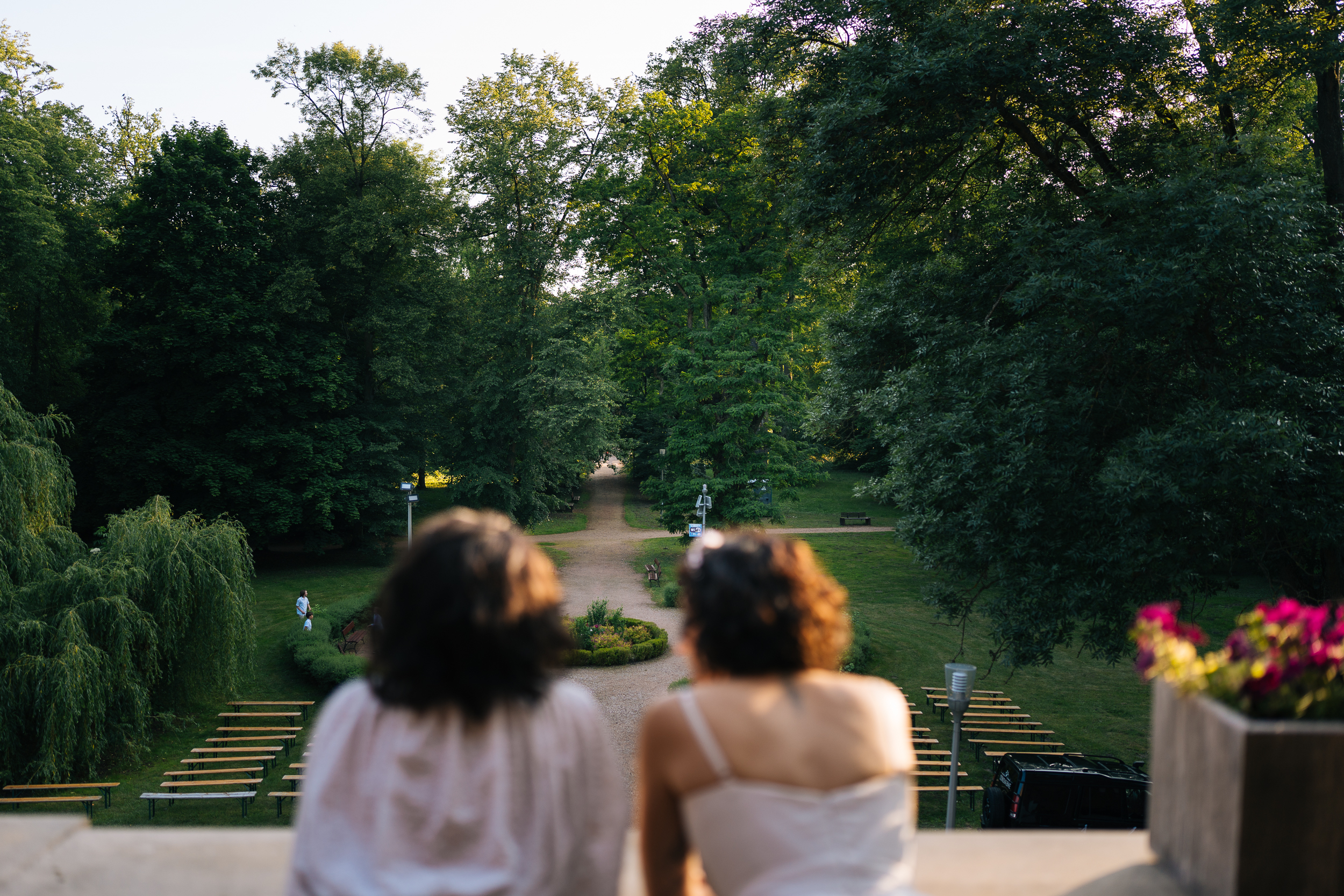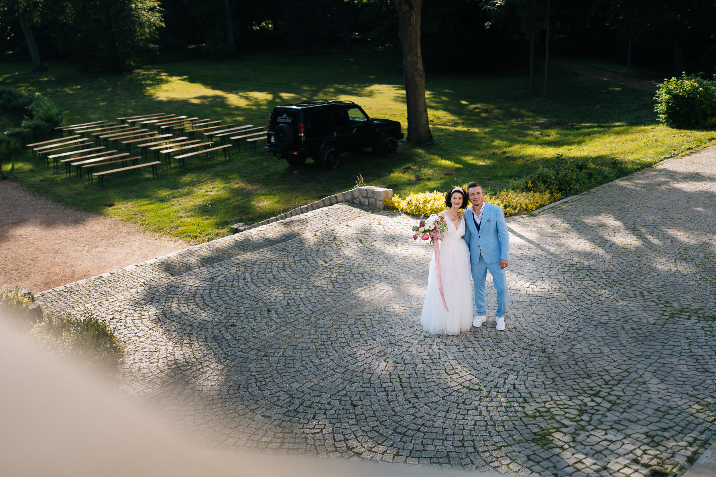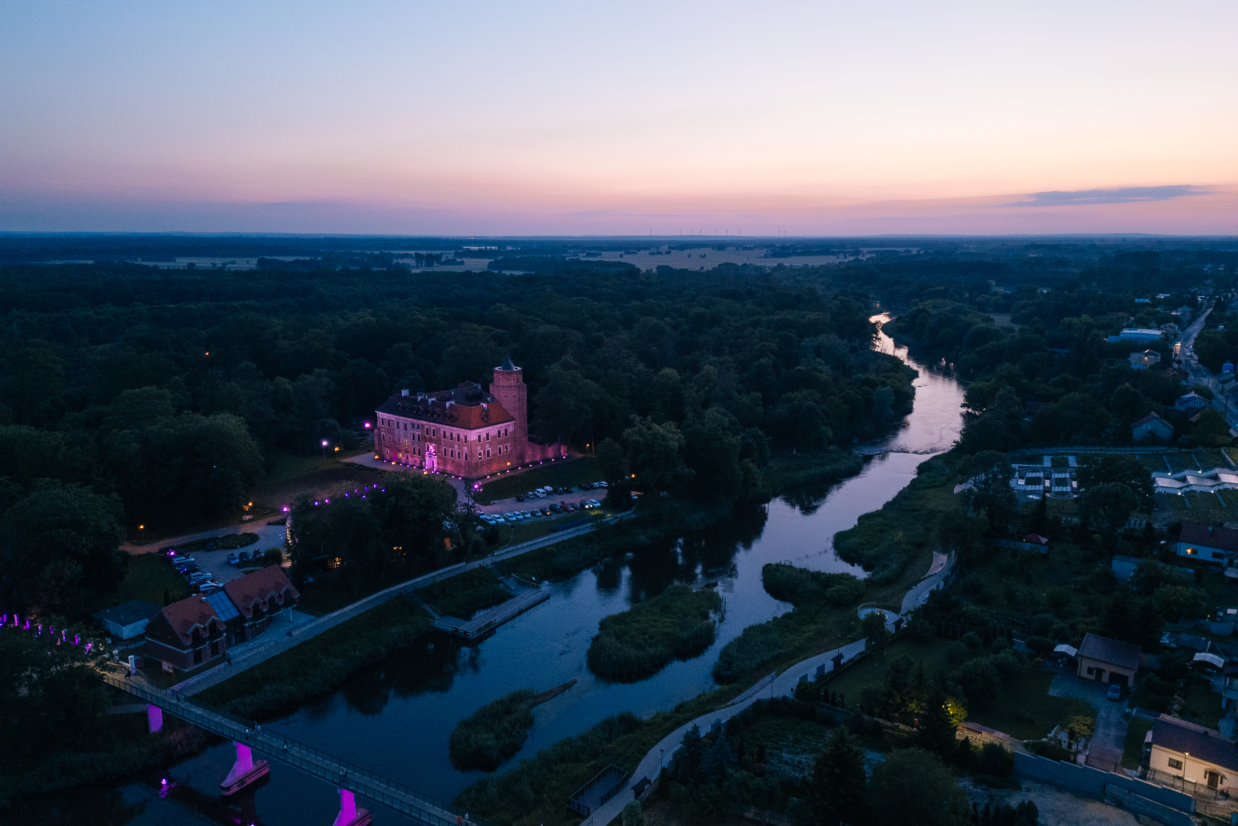 Podczas wesela w Uniejowie zrealizowaliśmy również sesję aranżowaną w kilku wyjątkowych przestrzeniach zamku. Te kadry wyróżniają się filmowym klimatem – są eleganckie, nastrojowe i pełne emocji. Uzupełnieniem całego reportażu była także fotografia lotnicza wykonana w miejscach ślubu i wesela – dzięki niej udało się pokazać folwark w Mniewie i majestatyczny Zamek Uniejów w pełnej okazałości, z niepowtarzalnej perspektywy.